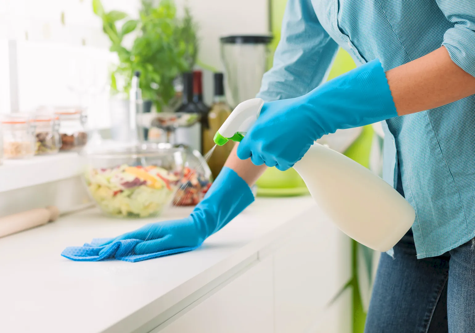 На кухне следует обратить внимание на обработку рабочих поверхностей и плиты, используя жирорастворяющие средства для удаления налета и загрязнений после приготовления пищи.